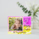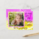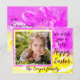 Rosa, goldgelb und weiß mit einer großen Dahlienblüte überlagert, um einen traumhaften eleganten Effekt zu schaffen. Die Postkartenfront lautet: Wir wünschen Ihnen ein frohes Ostern. Der Name Ihrer Familie erscheint unterhalb des Rahmens. Auf der Rückseite ist eine Vorlage für Ihre Rücksendeadresse.