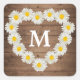 Hübsche Daisies Monogram Hochzeit rustikales Holz Quadratischer Aufkleber