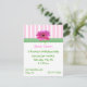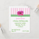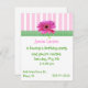 Hübsche Girl's Party Einladung mit rosa und weißen Streifen an der Oberseite mit einem grünen und weißen Gingham Band und einem rosa Gerber-Daisy. Anpassen Sie alle Textfelder mit Textstil, Farbe und Größe an Ihre Anforderungen.