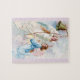 Vintage Malerei von zwei Engeln mit den blauen und weißen Mänteln, die eine Goldschnur halten und eine Glocke im Himmel schellen.
