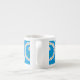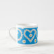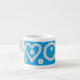 Eine hübsche kleine Espresso-Tasse, mit einem Rand von Daisy Chain Circles and Hearts auf Sky Blue Hintergrund; aus der Posh & Painterly 'Daisy Chain' Kollektion.