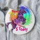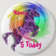 Eine schöne Lila Funkeleffektfantasie Unicorn springt durch einen Regenbogenwirbel; Ein tolles Geburtstagsknopf-Button für ein junges Mädchen und so einfach, mit ihrem persönlichen Namen anzupassen. und Alter.
