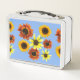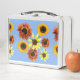 Hübsches Blumendesign von Sonnenblumenmöbeln, bedruckt auf individuellen Lunchkästen. Die farbenfrohen Blume sind in verschiedenen Farben und Formen gehalten. Die Hintergrundfarbe von Himmelblau kann an jede Farbe Ihrer Auswahl angepasst werden. Vielen Dank für Ihren Einkauf bei CherylsArtFotos auf Zazzle.