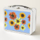 Hübsche, farbenfrohe Sonnenblumengeschirr auf den Metall Brotdose
