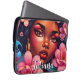 Coole Luftkunst, die eine hübsche afroamerikanische Frau mit rosa Blume im Haar darstellt. Hübsche hyper realistische digitale Kunst. Personalisierte Tablettenhülle.