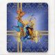 Moderne romantische Collage eines Vintagen Steampunk-Mädels im modernen Stil, das ein faszinierendes Kopfteil auf blauem Damastmuster trägt, mit bunten, blauen und orangefarbenen Schmetterlingen, und die goldene Lilie passt Ihren Namen oder Text an und kreiert so ein einzigartiges, individuelles Design oder besuchen Sie den LEATHER AND LACE Store für weitere Geschenkideen