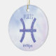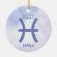 Dieses hübsche lila und Lavendel Fisces Weihnachtsschmuck zeigt Ihr astrologisches Zeichen aus dem Zodiac in einem schönen Funkeln wie die Sternbilder. Passen Sie dieses niedliche Geschenk mit Ihrem Namen in kursiver Schrift für jemanden mit einem Geburtstag Ende Februar oder frühen März an.