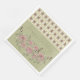 Leider ist beim Bestellvorgang nicht die Größe angegeben, zumindest habe ich es nicht gesehen. Der Name "Duschen"-Servietten ist etwas seltsam :-) Aber man kann aus verschiedenen Designs auswählen und es sieht ganz nett aus. Ich würde mir aber noch viel mehr verschiedene Farben und Muster wünschen! Insgesamt eine nette Idee für ein personalisiertes Accessoire zu allen möglichen Feiern. Der Druck ist OK, er ist nur ganz leicht unscharf.