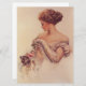 Dieses Design zeigt eine Illustration des amerikanischen Künstlers Harrison Fisher (1877-1934). Es zeigt eine schöne Frau mit einem eleganten Abend. Sie hält eine rosa Rose in der Hand und ärgert ihr Haustier spielerisch mit ihr. Die kleine Katze sieht von der rosa Blume fasziniert aus. Das Tier hält seine Pfote in der Luft. Das Originalwerk wurde 1909 von Harrison Fisher gemalt.