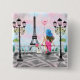 Hübsche Frau in Paris Button mit Eiffelturm