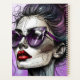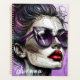 Personalisierter Planer. Wunderschöne Dame mit lila Sonnenbrille und rotem Lippenstift, Ai Art mit degenerativen Linien abstrakt Frau mit chaotischen Knospen.