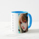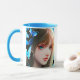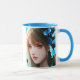 Ai-Kunst zeigt schöne Frau mit blauen Schmetterlingen im Haar. Personalisierte Kaffee-Tasse.