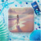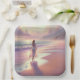 Hübsche Frauen Verließ Fußabdrücke am Strand Pappteller