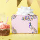 Das hübsche Geschenkpapier mit blass lila Hintergrund ist mit farbenfrohen Pfauen in lila, goldenen, grünen und blauen Farbtönen gestaltet. Ideal für Geburtstage, Duschen, Muttertag und mehr!