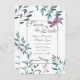 Diese hübsche Save the Date Hochzeitsankündigung umfasst zwei Aquarelldrachenfliegen, eine in Blau- und Grüntönen mit leuchtenden Flügeln und die andere mit Flügeln in lila und rosa Tönen. Sie befinden sich in einer einfachen Anordnung von Grünpflanzen in den Farben Grün, Blau, Grau und Braun mit weißem Hintergrund. -