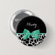 Eine gürtelschwarz-weiße Giraffendrucktaste mit einem hübschen, minzgrünen Band, das in einen niedlichen Bogen gebunden ist. Personalisieren Sie diese modische Tierprägemarke, indem Sie Ihren Namen hinzufügen. Flachbild, nicht eigentlicher Bogen.