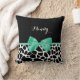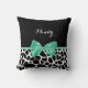 Ein gürtelschwarz-weißes Giraffenkissen mit einem hübschen, minzgrünen Band, das in einen niedlichen Bogen geklebt ist. Personalisieren Sie dieses modische Tierdesign, indem Sie Ihren Namen hinzufügen. Die Rückseite hat ein schwarz-weißes Giraffenmuster. Flachbild, nicht eigentlicher Bogen.