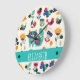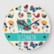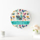 Hübsche Girly Cats Folk Art Add NAME Große Wanduhr