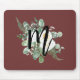 Hübsche graue Blume Monogram Burgundy Mousepad