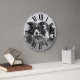 Dieser Hübsche Border Collie Dog Large Clock bietet ein fantastisches Schwarz-Weiß-Foto eines hübschen Ränder Collie Hundes, der auf einem Baumstamm liegt. Eine perfekte Ergänzung zum Zuhause eines jeden Hundeliebhabers. Das Bild ist exklusiv für Zazzle und kann nirgendwo anders gefunden werden!. © Dafydds Designs.