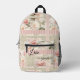 Rucksack mit Muster-Design mit hübschen Aquarellfarben-Rose auf Rosa und Grün mit Streifen und eleganten Polka-Punkten.