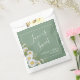 Hübsche Frühling/Sommer Gastgeschenk Hochzeit Tasche Design mit Aquarellfarbenecke auf basisgrünem Hintergrund mit weißen, anpassbaren Textblöcken in modernen Schriftart