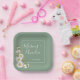Hübsches Hochzeitspapier Party Platte mit Aquarellfarbenecke auf grünem Hintergrund mit weißen, anpassbaren Textblöcken in modernen Schriftart