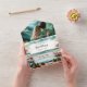 Hübsche Grün- und Brauner Naturliebhaber Hochzeitsreise mit Bergblick. Diese Einladung beinhaltet auch die UAWG- und Speisenauswahl. Fügen Sie Ihr Lieblings-Foto in den personalisierenden Bereich.