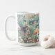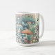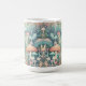 Personalisierte Kaffeetasse. Eine Aquarellkunst, die ein kleines Dorf in der Hütte darstellt, in dem sich Bäume, Pilze und ein kleines Haus befinden.