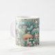 Personalisierte Kaffeetasse. Eine Aquarellkunst, die ein kleines Dorf in der Hütte darstellt, in dem sich Bäume, Pilze und ein kleines Haus befinden.