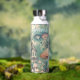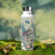 Personalisierte Wasserflasche. Eine Aquarellkunst, die ein kleines Dorf in der Hütte darstellt, in dem sich Bäume, Pilze und ein kleines Haus befinden.