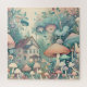 Eine Aquarellkunst, die ein kleines Dorf in der Hütte darstellt, in dem sich Bäume, Pilze und ein kleines Haus befinden.