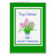 Eine hübsche persische Neujahrskarte für Husband, mit einem blau-weißen Topf aus rosa Hyazinthen in grüner Grenze und Happy Norooz in blau, aus einem Aquarellbild von Judy Adamson. Eine benutzerdefinierte Frontversion dieses Designs ist ebenfalls verfügbar, und Sie können die innere Nachricht dieser Karte personalisieren, wenn Sie möchten.