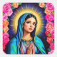Hübsche Jungfrau Mary mit Gebetshandschuhen & Rose Quadratischer Aufkleber