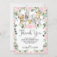 Dieses schöne Design besticht durch eine Gruppe von bezaubernden Safari-Tieren und feminin blush rosa Blume.
