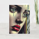 Leere Karte. Ai art on card ist eine traurige Frau mit Tränen in den Augen, die aus dem Fenster schauen und Regen sehen.