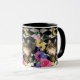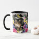 Ein entzückender brauner Tabby mit weißem Tatzen Maine-Waschbären schmückt diese Tasse, die auch einen Schmetterling und Blumen kennzeichnet. Dieses Bild ist auch auf anderen Produkten in meinem Zazzle Speicher verfügbar.