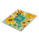 Gelbe und türkisfarbene Blume der Volkskunst. Fügen Sie im personalisierten Bereich Initialen hinzu.