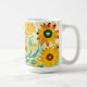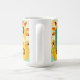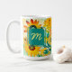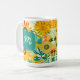 Gelbe und türkisfarbene Blume der Volkskunst bedienen eine Kaffeetasse. Fügen Sie im personalisierten Bereich Initialen hinzu.