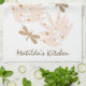 Hübsche abstrakte Blätter und Libellendesign. Pfirsichfarben und Bronzestöne.