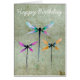 Hübsche originale Aquarellbild niedlicher Libellen in verschiedenen Farben vor rustikalem Hintergrund.