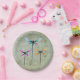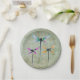 Hübsche originale Aquarellbild niedlicher Libellen in verschiedenen Farben vor rustikalem Hintergrund.