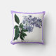 Dieses ist eine Vintage Illustration der lila lila Blumen auf einem weißen Hintergrund mit farbigem Rand der Lavendelflieder. Die Rückseite dieses klassischen stilvollen Kissens ist in einer schlichten Farbe, zum des Randes des lila Bildes zusammenzubringen. Entworfen durch Lerchen-Entwürfe