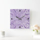 Hübsche Wanduhr für Liebhaber von lila! Lila Hintergrund mit zufälliger Streuung von Blätter und Schatten.