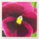 Schützen Sie Ihren Tisch vor Wasserzeichen und Flecken mit dieser quadratischen, gläsernen, getränkten Coaster, die das Foto einer hübschen, lila/magentafarbenen Pansy-Blume mit gelbem Mittelpunkt zeigt. Ein schönes, blumengeschmücktes Design!