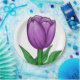 Lila Tulpe und grüne Blätter vor weißem Hintergrund, um die wärmere Frühlingssaison zu begrüßen. Original Artwork von TamiraZDesign.