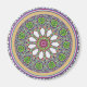 Ein femininer runder Fliesenmosaikmustermagnet mit einer hübschen weißen, dunklen Blume mit einem leichten lila Zentrum.