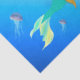 Hübsche MeerjungPrinzessin schwimmt zu Oberfläche umgeben von schönen Quallen auf tiefblauem und türkisfarbenem Hintergrund. Dieses Design ist perfekt für die Dekoration der Kinderzimmer. Weitere Produkte in unserem Shop erhältlich