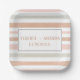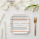 Die hübsche, moderne quadratische Papierplatte zeichnet sich durch neutrale Aquarellstreifen auf weißem Hintergrund aus. Die Hauptfarben Grau, Rosa und Cotta in Pastellfarben. Personalisieren Sie Ihre Trauung mit den Namen und dem Datum des Ehepaares