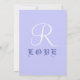Hübscher Hintergrund. Braut und Groom's Names in Großbuchstaben schwarze Typografie. Persönliche Hochzeitsdetails in dunkleren Periwinkeln. Klicken Sie auf Schriftart anpassen und bearbeiten. LIEBE ist auf der Rückseite geschrieben. Mit Monogramm Skript, das in Weiß anfängt. Original Design von TamiraZDesign.